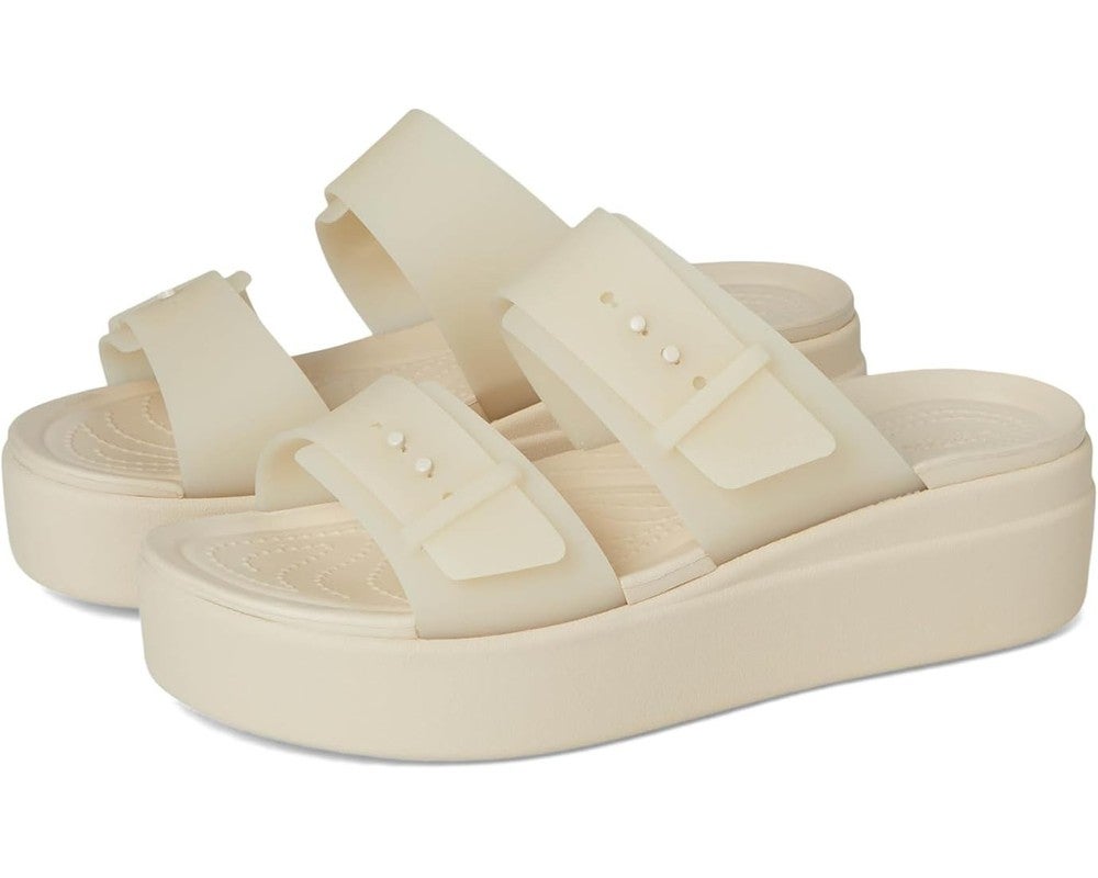 Crocs Brooklyn Buckle 210980-0LH Sandals Women 8 Sandstone Platform Slide VER911