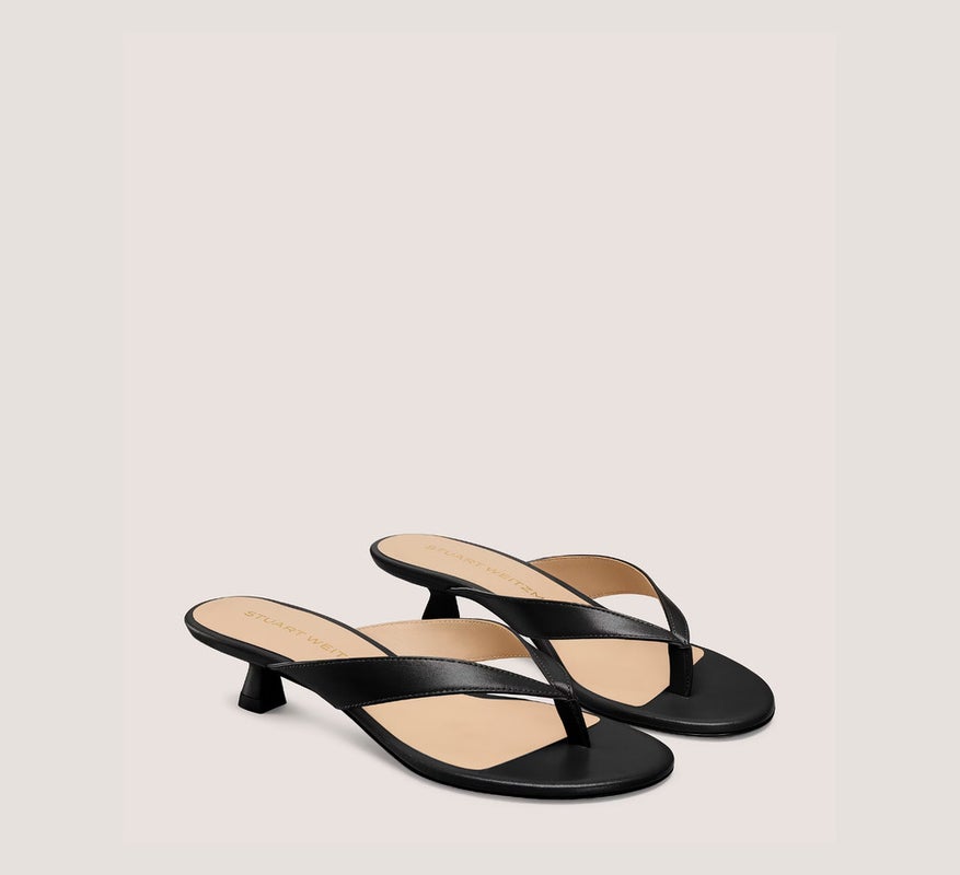 Stuart Weitzman Rio SL424 Sandals Womens US 9 Black Leather Kitten Heel HAWK1929