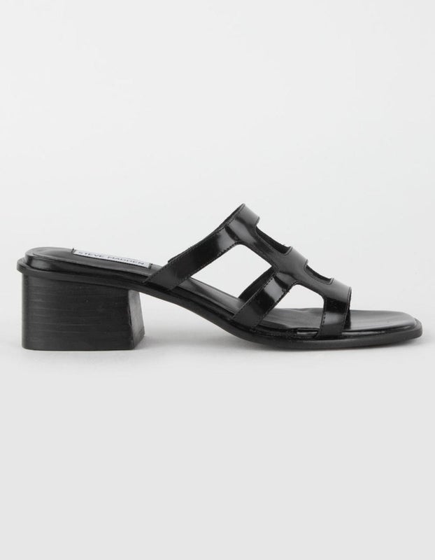 Steve Madden Princess Sandals Women's 8 Black Leather Slip On Block Heel ZAP1303