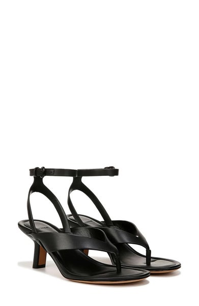 Vince Julian Sandals Women's US 6 Black Leather Ankle Strap Kitten Heel VER1023