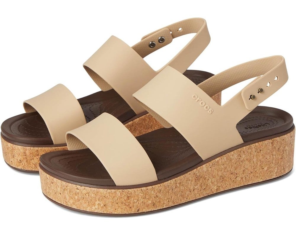 Crocs Brooklyn Cork Low 211144-212 Sandals Women's US 8 Chai Wedge Heel GBO2603