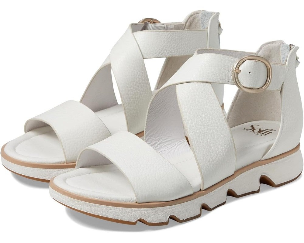 Sofft Mackenna Sandals Womens US 8.5 White Leather Round Toe Ankle Strap ZAP2243