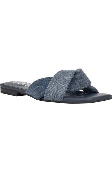 Calvin Klein Marita 2 Sandals Women's Blue Knotted Vamp Slip On Slide HTAT331