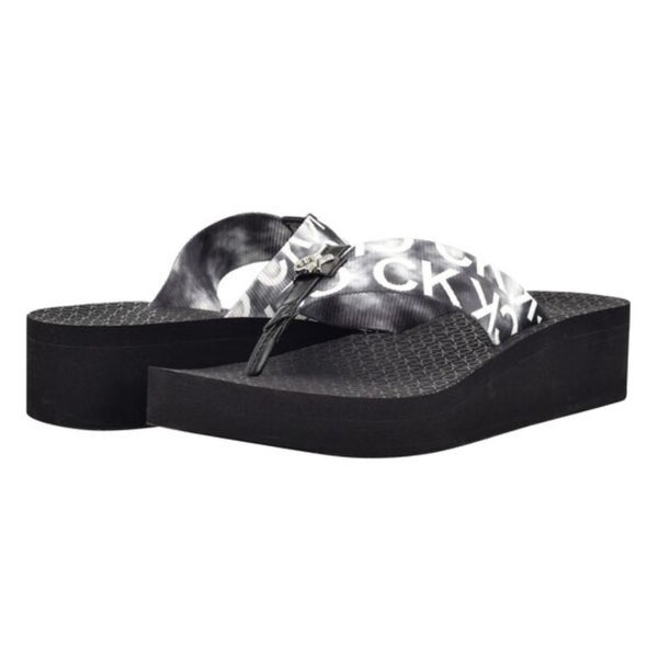 Calvin Klein Meena Sandals Womens 10 Black Toe Post Platform Flip Flop HTAT333