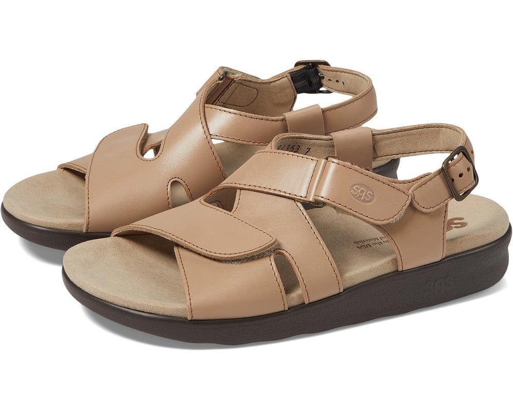 SAS Huggy 1570-101 Sandal Women 7 Truffle Leather Adjustable Cross Strap VER1240