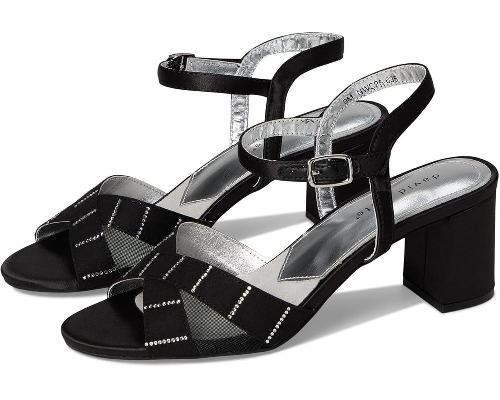 David Tate Cocktail Sandals Women's US 10 Black Ankle Strap Block Heel HAWK2417