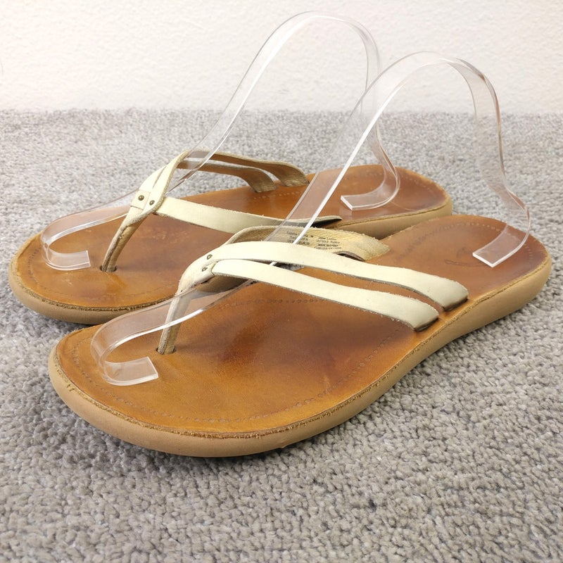 Olukai Kapehe Luana Sandals Women 9 Shoes Slip On Leather Light Tan Flip Flops