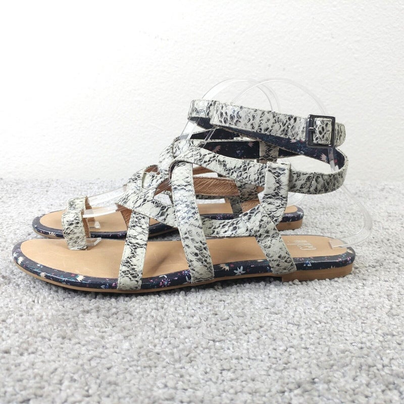 Cabi Athena Gladiator Sandals Womens Size 7 Shoes Snake Print Flats Ankle Wrap