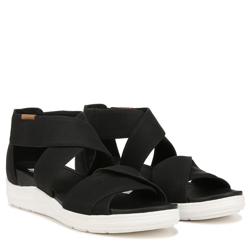 Dr. Scholl's Time Off Fun Sandals Women 8 Black Faux Leather Ankle Strap VER1565
