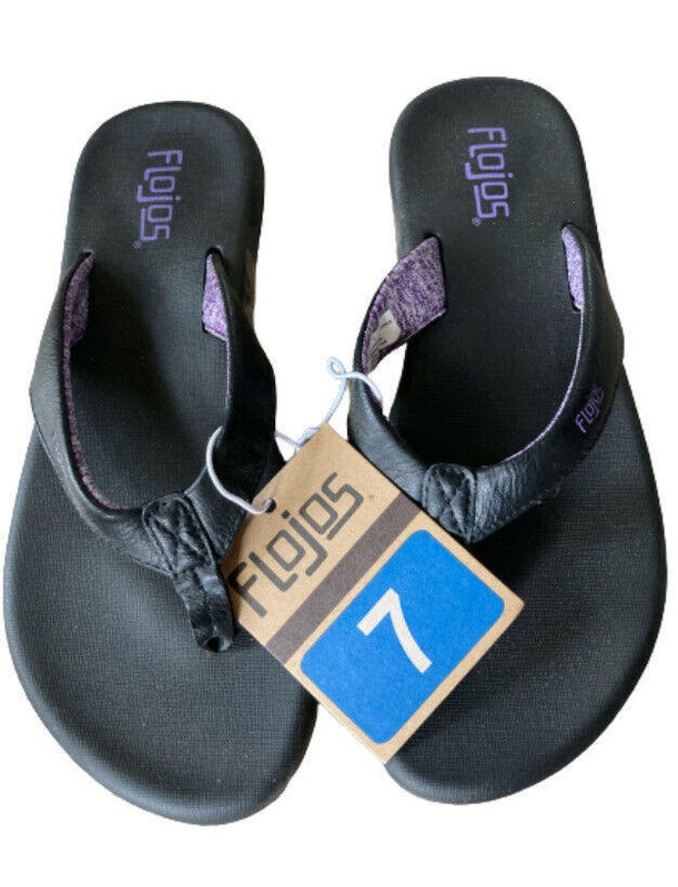 NWT Flojos Ladies Flip Flops Black Lavender Size 7