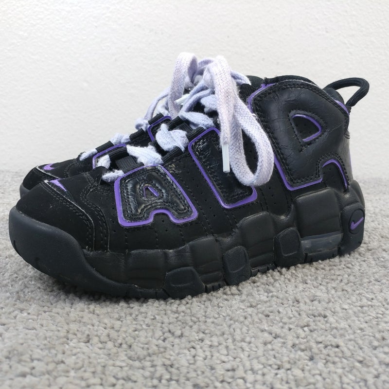 Nike Air More Uptempo 96 Youth Size 2Y Shoes Black Purple Lace Up Mid Tp Sneaker
