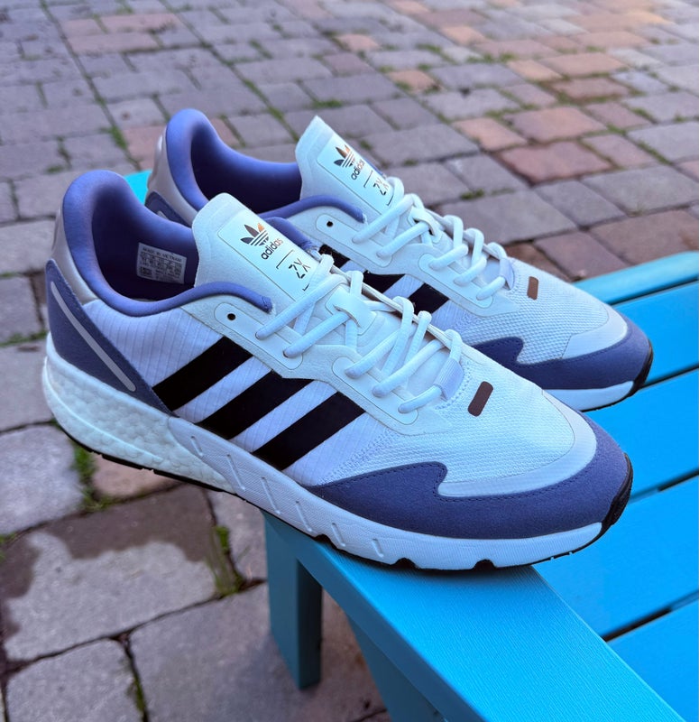 Men’s Adidas ZX 1K Boost Cloud White Core Black Crew Blue Casual Shoes - Size 11