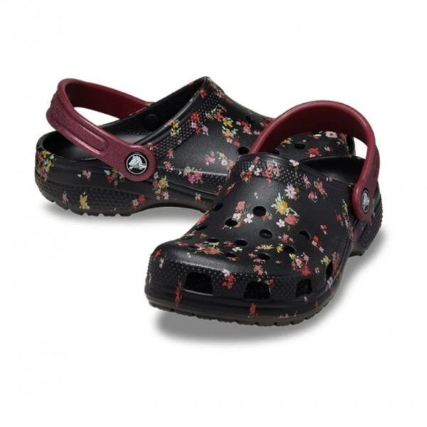 Crocs Classic 210354-0C4 Clog Kids Black Ditsy Floral Slip On Casual Shoe NIN240