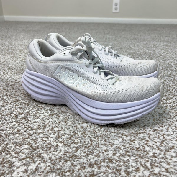 Hoka One One Bondi 8 Shoes Womens 10.5 White Mesh Road Running Sneakers Walking
