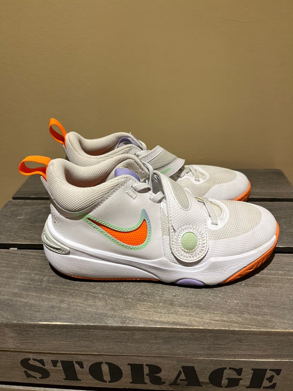 Nike Team Hustle D 11 GS Girls White / Total Orange Sz 3.5y - Great condition