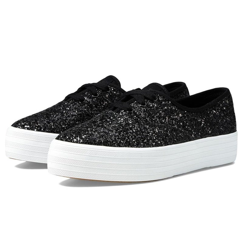 Keds Point Sneakers Women's 9 Black Glitter Pointed Toe Platform Shoes HAWK1820K