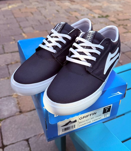 MENS LAKAI LIMITED FOOTWEAR GRIFFIN CHARCOAL CANVAS SKATEBOARD SNEAKERS - SIZE 7