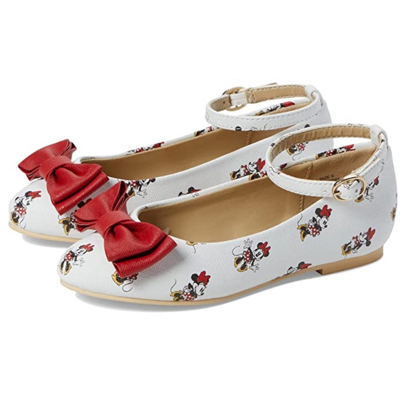 Janie and Jack Minnie Mouse Flat Girls US 4 White Bow Detail Ankle Strap ZAP1219