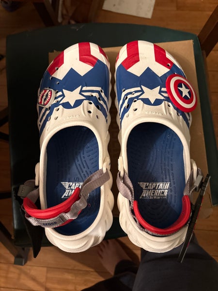 Captain America crocs Unisex Size M 9.0 (W 10.0) Adult Crocs Classic Clog Shoes (Used)