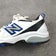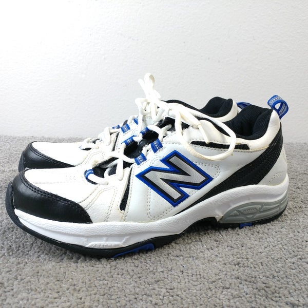 New Balance 608 Mens Size 9 Walking Shoes White Blue Sneakers Low Top Leather