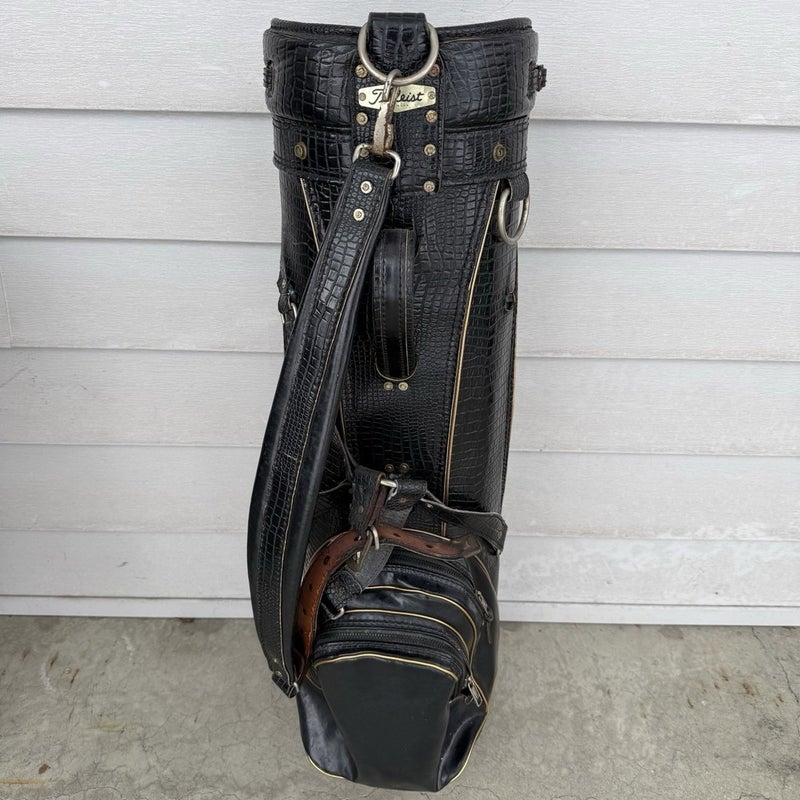 Vintage Titleist Black Gold Faux Alligator Leather Accent Golf Cart Bag USA