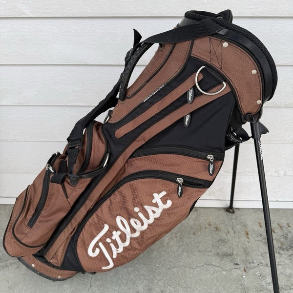 Titleist 6 Way Dividers Carry Stand Golf Bag Dual Straps Brown White Black