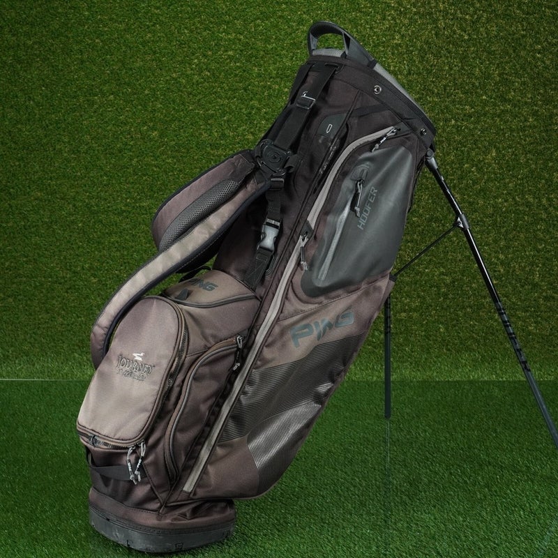 PING HOOFER STAND BAG 5 WAY DIVIDERS GOLF CARRY BAG, BROWN ~ CLUB LOGO!