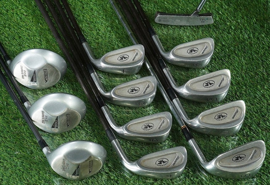 MEN'S 12pc. STARTER GOLF SET MIZUNO, EDGE TECH + TAYLORMADE STIFF GRAPHITE RH