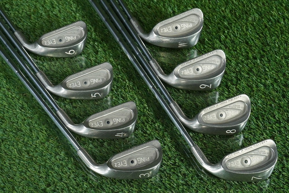 PING EYE 2 IRONS SET 3-PW STIFF STEEL SHAFT BLACK DOT GOLF CLUBS RIGHT HANDED RH