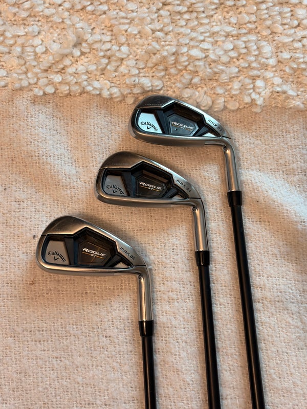 CALLAWAY ROGUE ST MAX OS IRON SETS 5-PW,AW STEEL STIFF STANDARD TRUE TEMPER ELEVATE 85 MPH STEEL