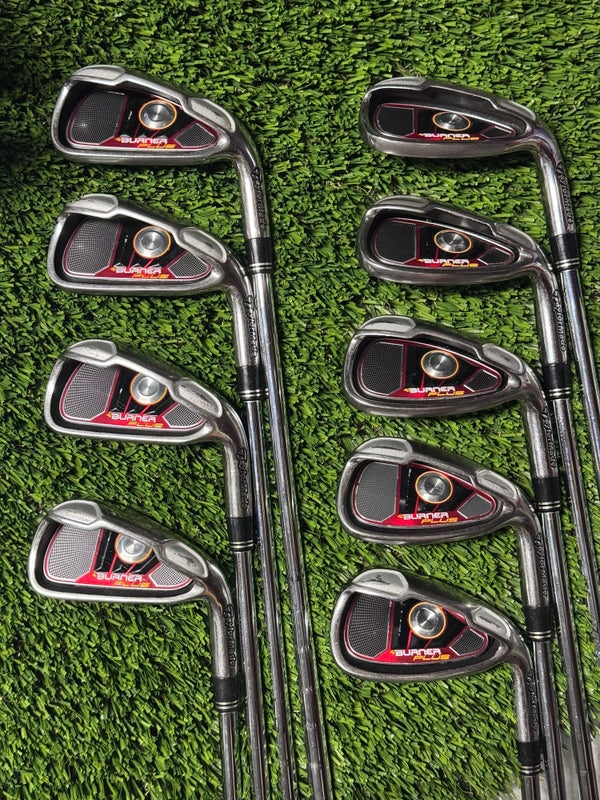 TaylorMade Burner Plus 9 Piece Iron Set 4-PW, SW, AW Stiff Flex Steel Shaft RH