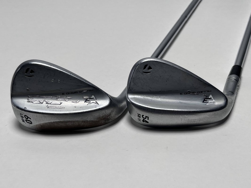 TaylorMade Milled Grind 3 Raw Chrome Wedge Set 54* 11 60* 8 S400 Stiff Steel LH