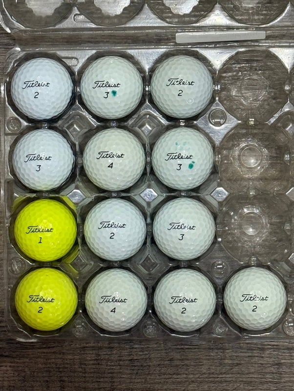 13 Titleist Tour Speed Golf Balls - Some Stripe, Yellow (5A)