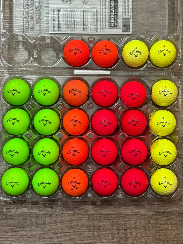 28 Callaway Supersoft Golf Balls - Green, Orange, Red, Yellow Colors, 5A/4A