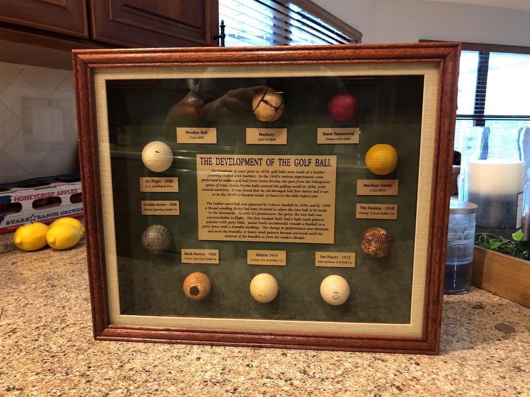 Cleaning out the closet and came across this history of the golf ball. Glass and wood frame in great condition. Unique piece that any golfer would like to have