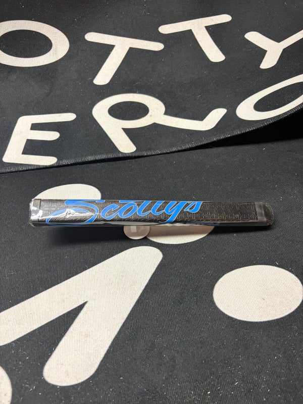 Scotty grip, mid 1.0 flat face. Black with blue letters.