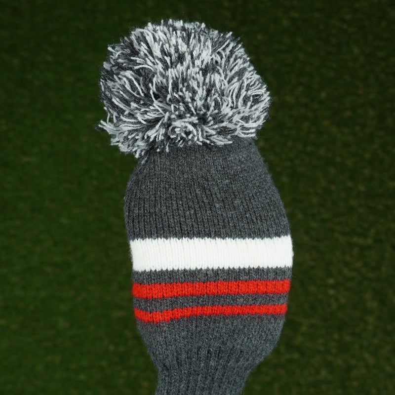 SCOTT EDWARD KNIT FAIRWAY WOOD HEADCOVER SOCK GREY RED WHITE WARNING STRIPES #'S