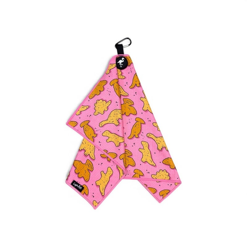Logie Joes Pink Dino Nugget Golf Towel | Premium Double-Sided Microfiber
