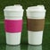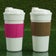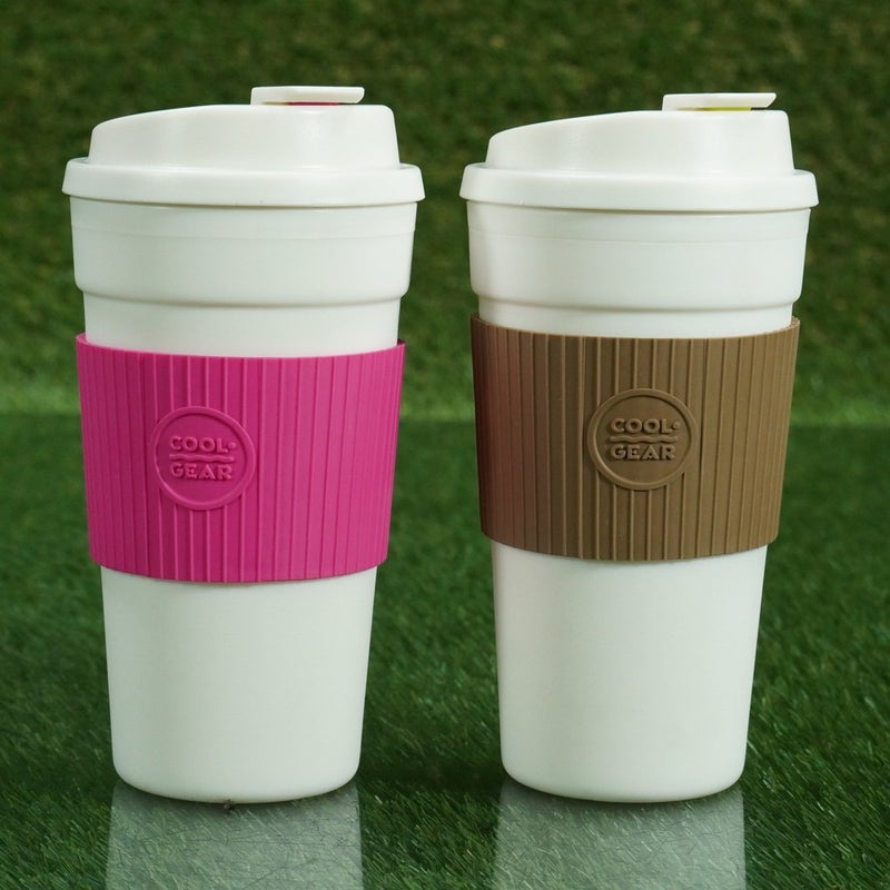 2 COOL GEAR 1010 BANDED COFFEE TRAVELER MUGS PINK / BROWN, 19 OZ