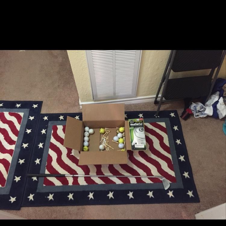 Nice little deal.Gloves are New and The deal comes with a golf club,golf balls,and a lot of golf tees.Great Steal!