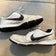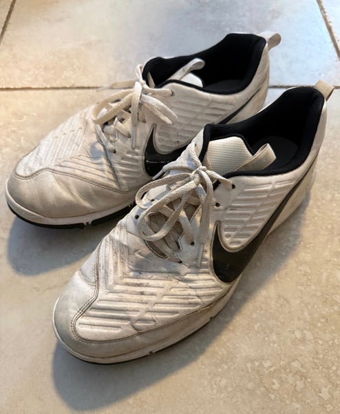 Nike golf shoes. White and black. Size 11.5 wide. Cosmetic damage from use. Spikes are still in good shape.