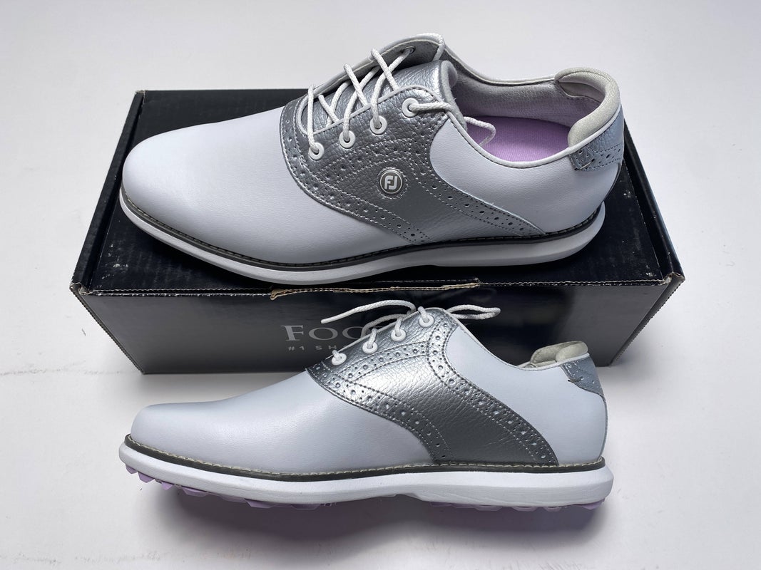 FootJoy FJ Traditions Golf Shoes White Silver Pink Women's SZ 9.5 (97897)