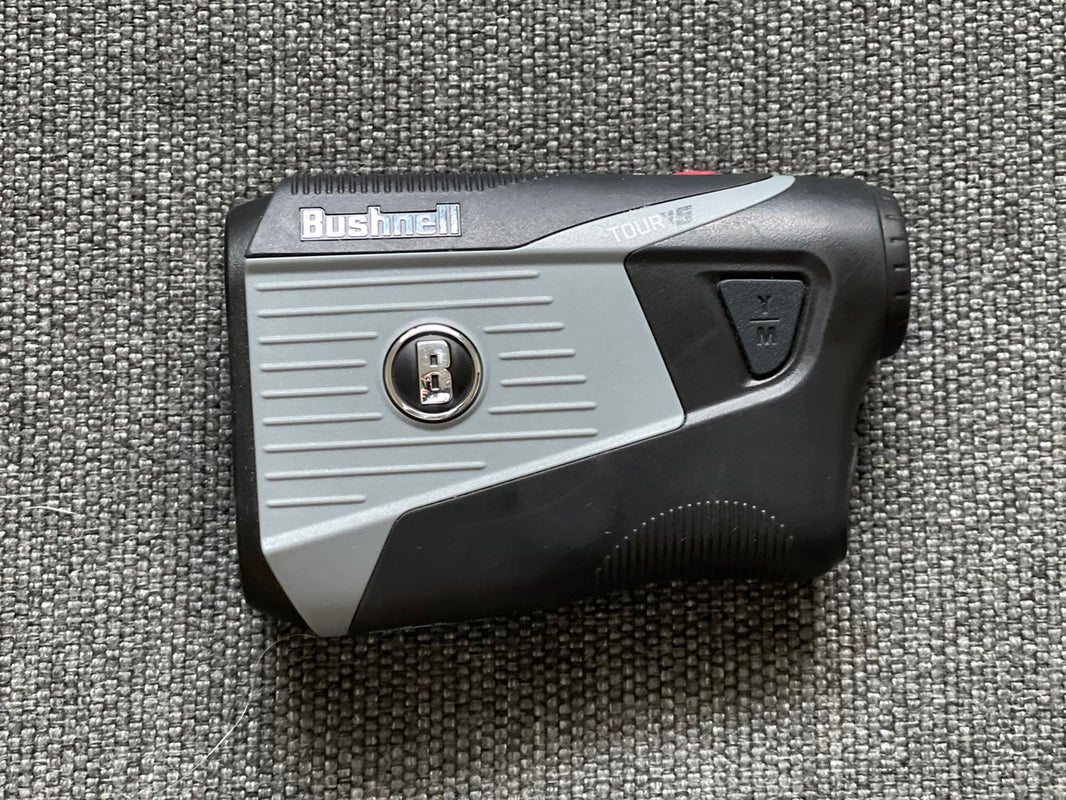Used- like new Bushnell Tour V5 Rangefinder with carrying case. Equipped with bite magnetic technology clip on to any cart.