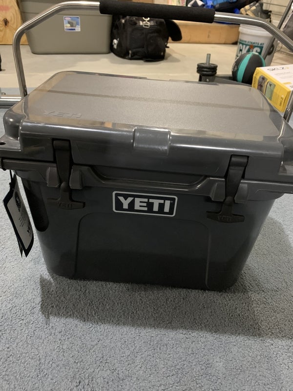 New Yeti Roadie Cooler. Slight scratch on the top. Never has been used, and works great as a seat! Yeti is a great brand and keeps drinks, food, and other items cold for an extremely long time! Holds 14 cans, with recommended 2:1 ice to content ratio. Rotomolded Construction withstands the rigors of your journey, T-Rex lid latches constructed of heavy duty rubber. No buyer warranty or refunds.