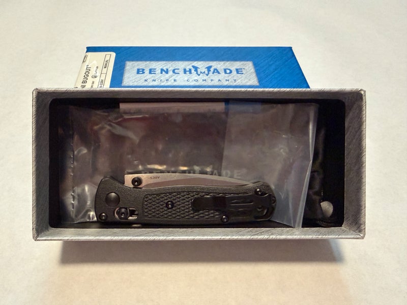 Brand new in box Benchmade Mini Bugout Grivory pocket knife with box, bag, & paperwork. S30V steel blade. Other colors available in separate listings.
