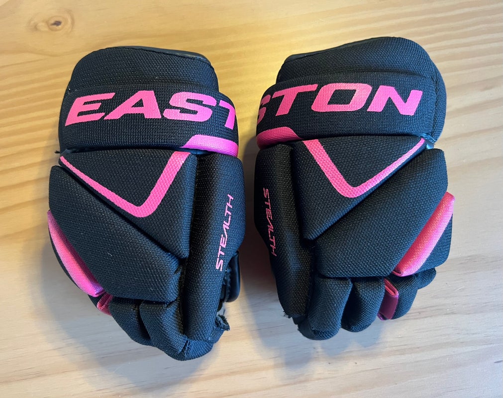 Easton Stealth Black/Pink Youth Hockey Gloves 8”