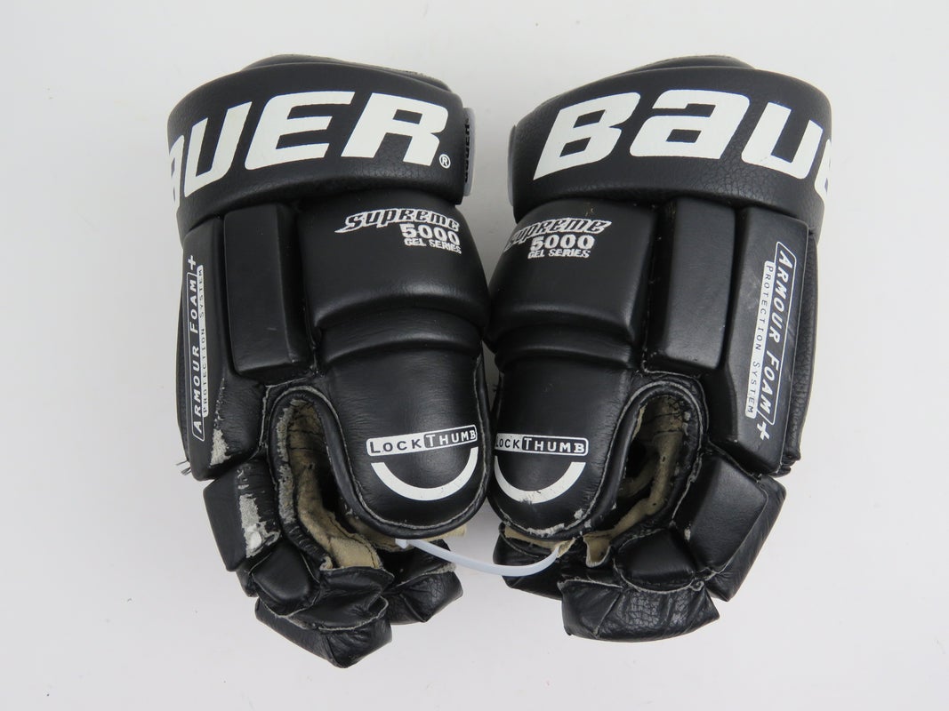 Vintage Leather Black White Bauer Supreme 5000 Gel Series Hockey Gloves Size 14"