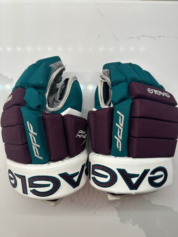 Custom Eagle X844 Pro Gloves – Anaheim Ducks Vintage (Eggplant, Jade and White)