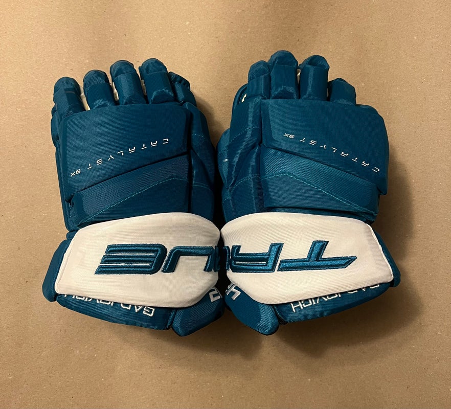 New TRUE NHL Pro Stock San Jose Sharks Hockey Gloves Senior Size 14" Teal