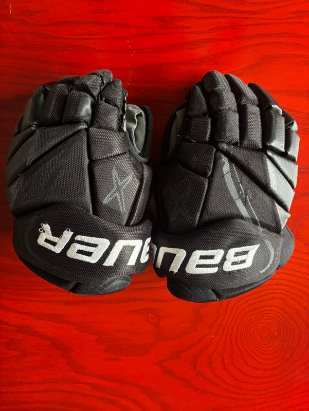 Used Bauer x velocity Lite gloves. Signs of wear due to the used condition. No holes or excessive wear in the palms means there is still lots of life left in these gloves.